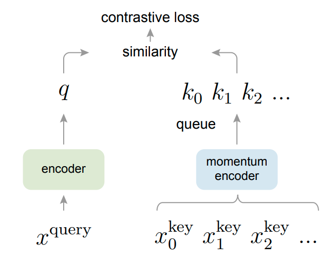 기존의 contrasive learning과 가장 크게 다른 점은 key sample들을 queue형태로 저장한다는 점이다.