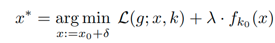 이렇게 하는 경우, x_0에서 생성된 sample x가 f_classifier에서 기존 class인 k_0로 분류되는 것은 막으면서