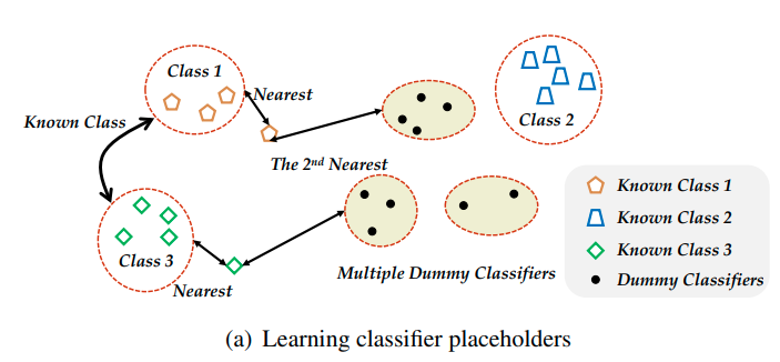 이때 첫번째 loss term을 통해서 classification 성능을 유지하며, 두번째 loss term을 통해서 dummy classifier가 다른 class center (classifier weight) 보다 더 가깝게 위치하도록 유도된다.