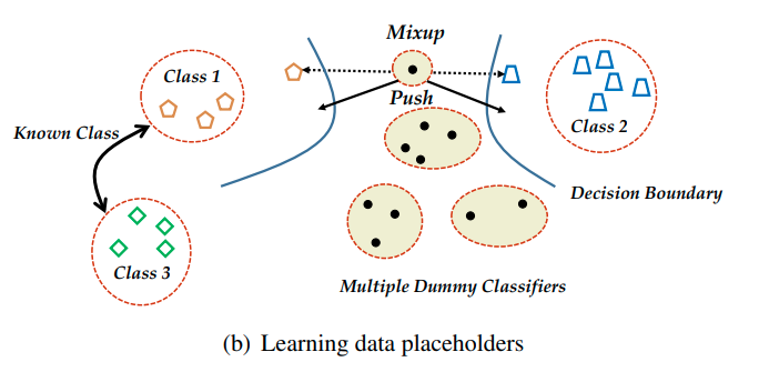 논문에서는 openset boundary를 설정하기 위한 classifier placeholder 뿐만아니라 openset instance를 생성하여 learning에 활용한다. 이때 openset instance를 data placeholder라고 지칭한다.