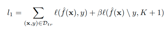 이러한 dummy classifier는 class마다 threshold를 지정하기 위해 사용되며, 따라서 특정 target class에 가깝게 embedding 되도록 유도한다. 따라서 아래와 같은 식으로 optimization 한다.