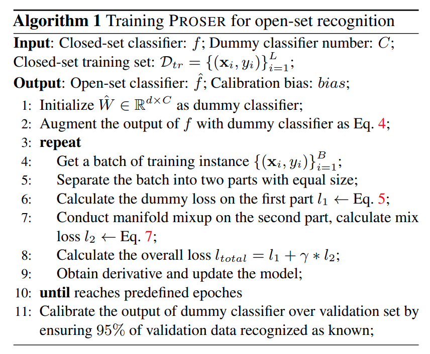 이를 통해 생성된 x_pre를 openset instance로 분류하며 아래와 같이 openset으로 분류하도록 트레이닝한다.