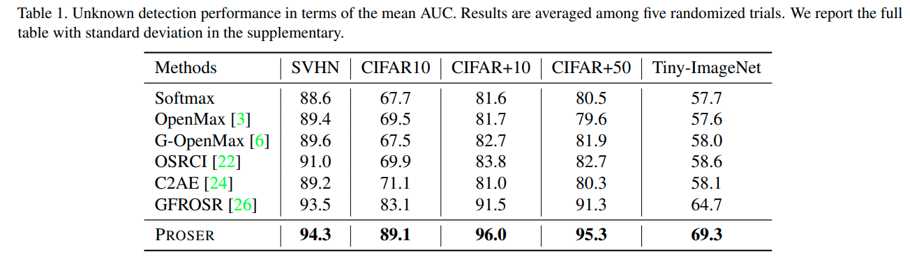 - MNIST와 Cifar10 데이터셋으로 학습시킨 후 ImageNet-crop, resize & LSUN-crop , resize Test dataset을 openset으로 test