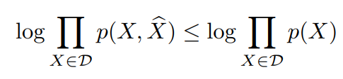 이때 p(X, X^)는 p(X^|X)p(X)로 표현할 수 있고, p(X^|X) 는 X->X^간의 관계가 deterministic하게 표현되는 경우 peaked distribution (각 X에 대해서 1에 가깝게..) 형태가 되므로 low bound도 최대가 되는 장점이 있다.