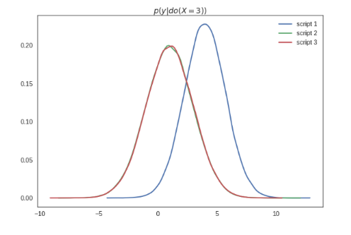 이 방법의 경우, 데이터를 분석하는 사람이 데이터를 직접적으로 setting해서 지정했을때 Y의 distribution을 의미한다.(What is the distribution ofYif I were tosetthe value ofXtox.) ( intervene 한다고 표현 : if I intervened in the data generating process by artificially forcing the variableXXto take valuexx, but otherwise simulating the rest of the variables according to the original process that generated the data.)