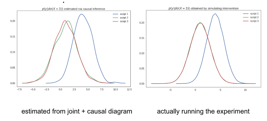 그러나 interventionalp(y|do(x)) 의 경우 x의 값이 intervene된 경우이기 때문에 실제로 x와 y가 관련이 있다고 볼 수 없고 p(y|x)라고 보기 보다는 오히여 p(y)로 보는 것이 맞다고 할 수 있다.