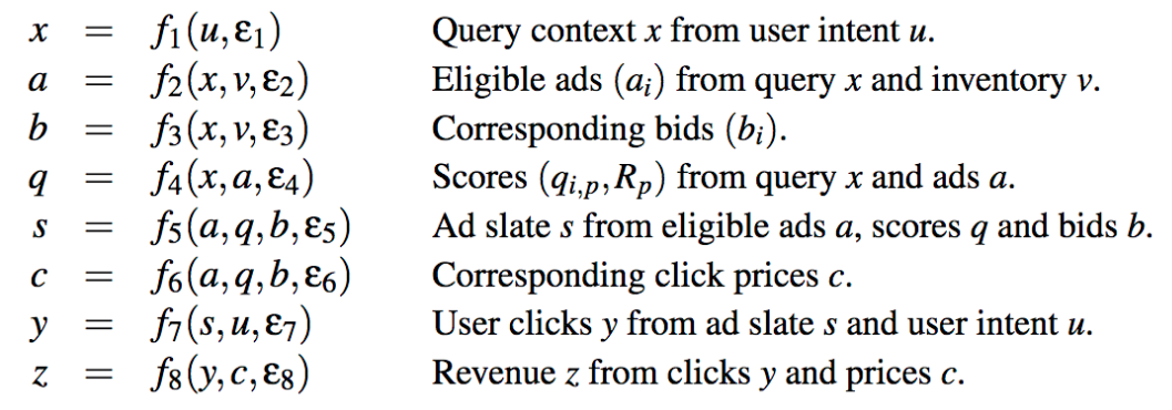 위 그림이 나타내는 각 변수간의 관계도는 다음과 같다.이 SEM (The structural equation model)은 causal graph가 담고 있는 정보를 모두 담고 있으며, intervention 또한 해당되는 function을 제거함으로 표현이 가능하다.